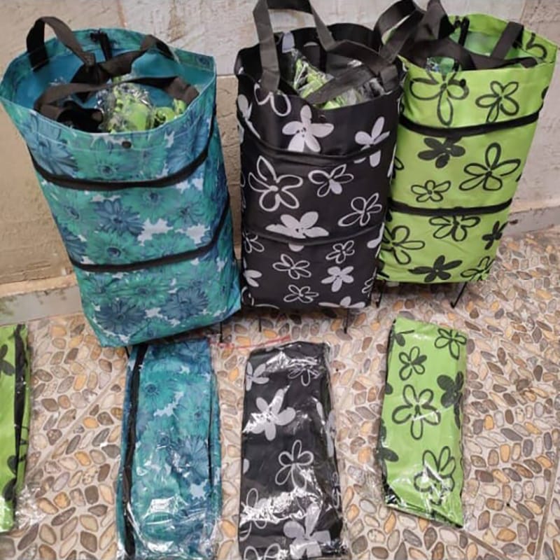 مصممة بعجلات وأقدام حاملة، والتي يمكن طيها في حقيبة يد، صغيرة وخفيفة الوزن. كما يمكن أن تفتح لاستخدامها كحقيبة أو عربة تسوق لنقل حوامل المقتنيات شديدة التحمل.
